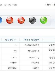 729회 로또당첨번호 11, 17, 21, 26, 36, 45 1등 당첨자 4명 자동 3명 당첨지역 배출점